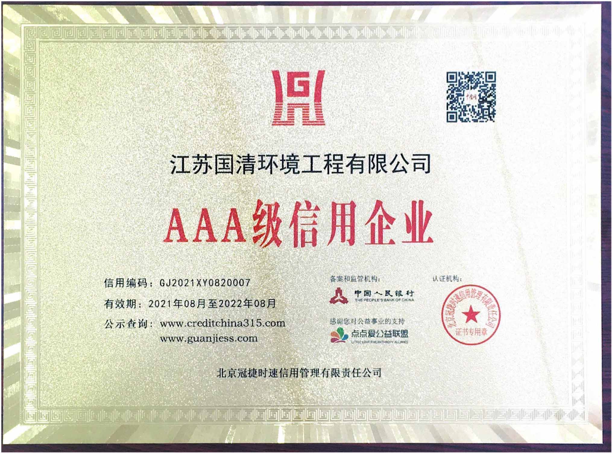 企业信用等级证书