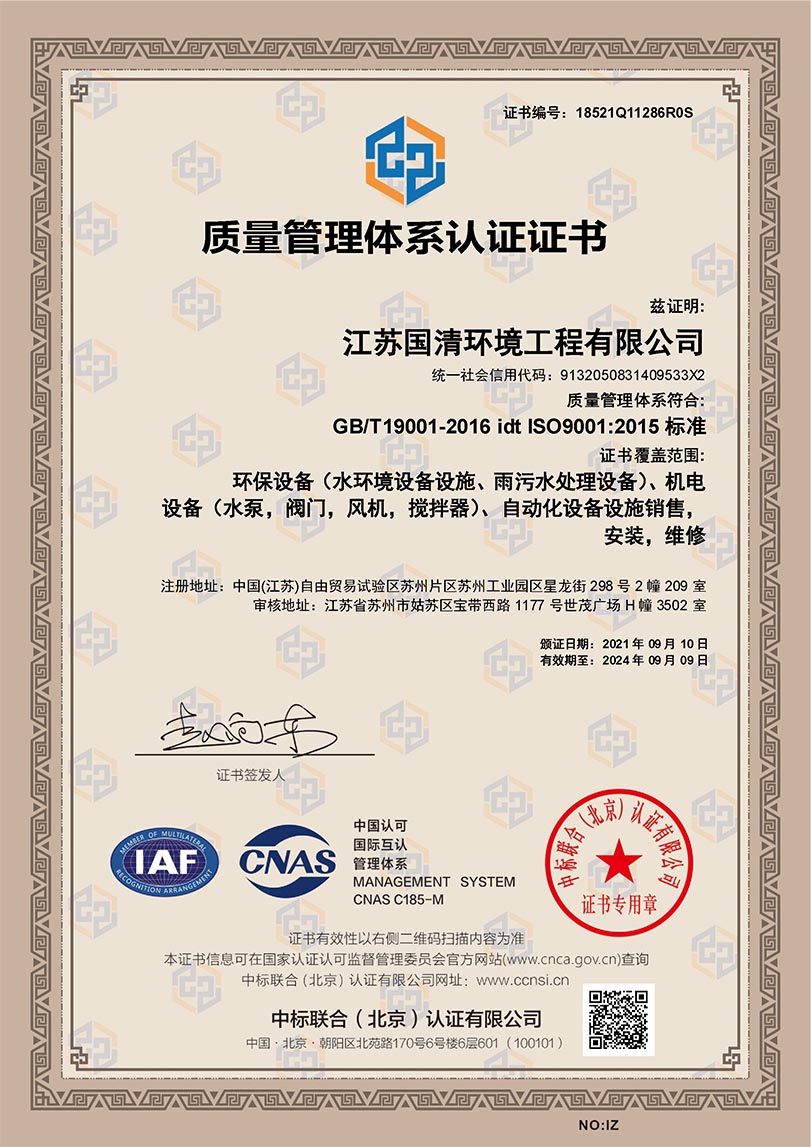 质量管理体系认证证书